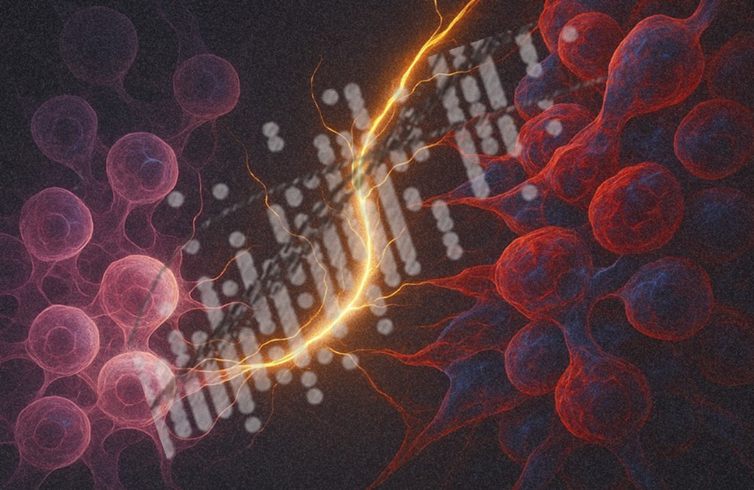 Issue 342: In the background, we represent what would be cancer cells competing for nutrients and influencing each other's growth dynamics. In the center, we show multiple possibilities for evolution, where each organism can follow a distinct path and evolve differently. The highlighted rays demonstrate and highlight the ability of the proposed models to explain a wide range of behaviors, whether fast or slow growing, respecting the particularities of each organism studied. This art was generated with help from ChatGPT.