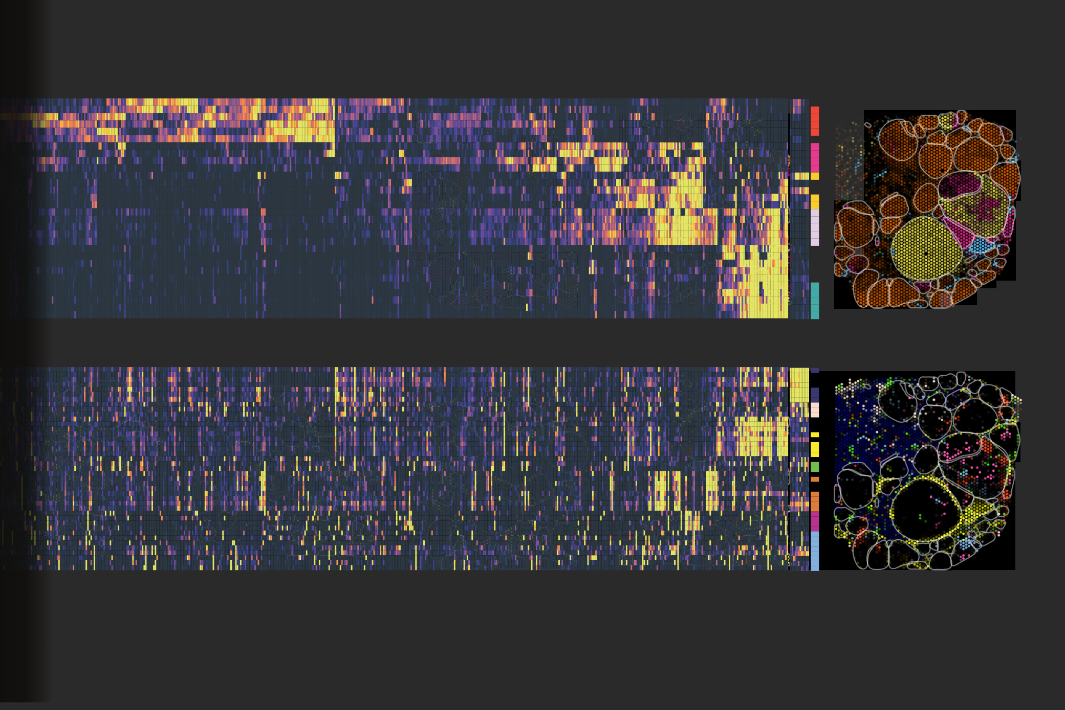 Issue 344: Complex genetic changes drive the emergence of diverse tumor cell populations, making tumor heterogeneity a fundamental feature of cancer. Yet, how genetic alterations interact to reprogram tumor cells and their microenvironment remains largely unknown. Here, the authors develop CHOCOLAT-G2P (C-G2P) a scalable experimental framework that cohesively combines multiplex in vivo functional genomics with spatial transcriptomics. In a proof-of-concept, they generate a tumor-mosaicism mouse model based on a powerset combination of 8 alterations that are introduced in the native context of murine liver, testing 256 genotypes in a single experiment. Capturing 324 annotated tumors across six ~6x6 mm2 sections, C-G2P charted phenotypic landscapes of tumor ecosystems, revealing zonation-associated liver cancer subclasses and connections between tumor subtypes and stromal- as well as immune-cell signatures. Further, C-G2P decoded epistatic relations within compound genotypes relevant to cholangiocarcinoma. C-G2P lays a foundation to systematically decipher complex genetic underpinnings of disease phenotypes within tissue context.