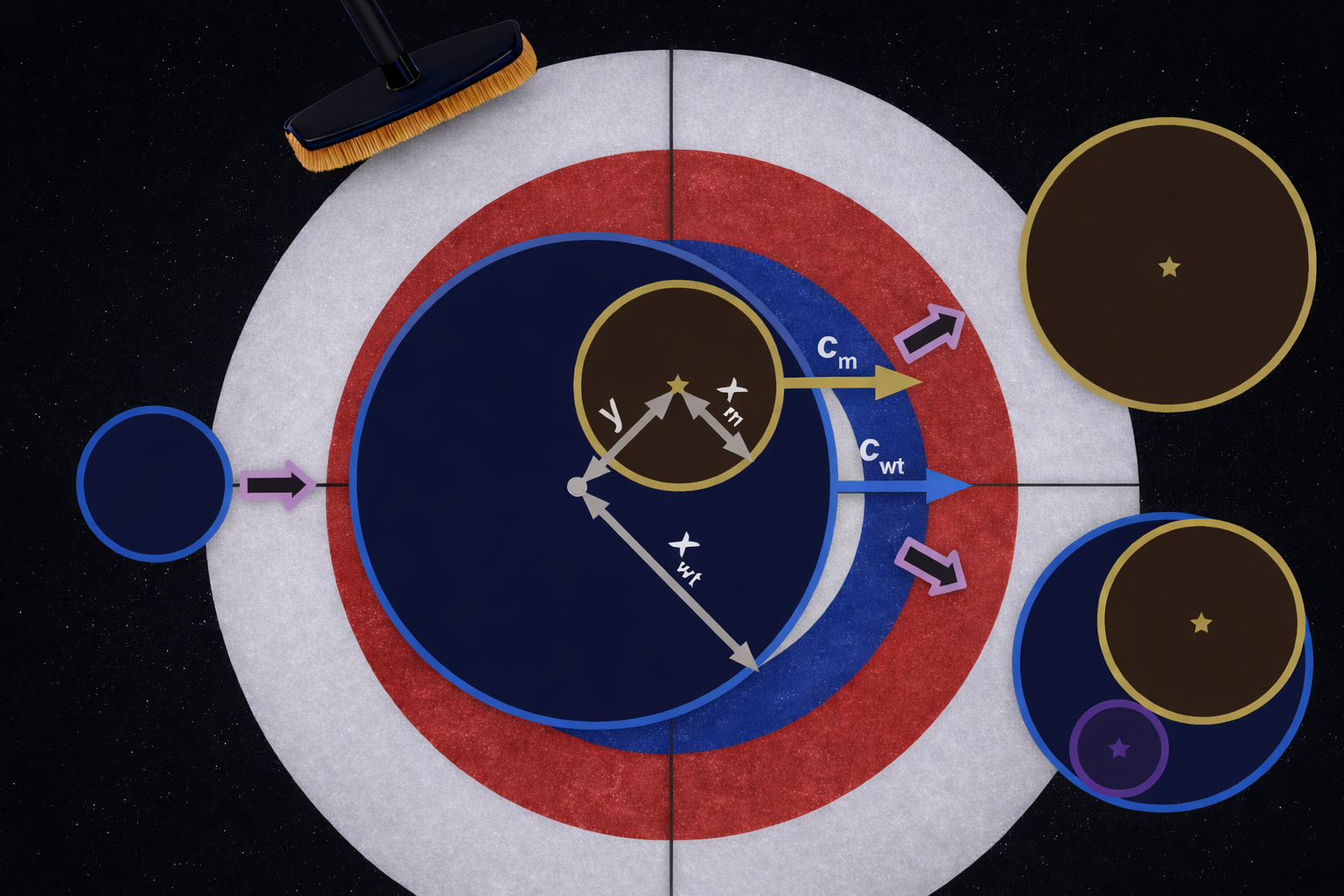 Issue 362: Success in a sport like curling depends not only on how much stronger you are than your competitors but also very much on luck. Likewise in biological evolution. The multistepgenetic model of cancer development posits that tumours overcome physiological constraints and become more aggressive by successively acquiring driver mutations. If a fitter mutant cell line age can disperse within a tumour then, in principle, it might eventually spread and outcompete all other lineages, thus achieving a selective sweep (upper right in the image). Alternatively, another mutant of similar fitness might arise and block the advance of the first mutant via clonal interference (lower right). To investigate which scenario is most likely, we analysed a macroscopic, stochastic model to obtain simple expressions for sweep probabilities in one, two and three dimensions. We ran extensive agent-based simulations to test the robustness of these results,which are equally applicable to otherexpanding, evolving populations such as bacterial colonies andinvasive species. A post on the Mathematical Oncology Blog explains more about our study and a Behind the Paper post tells the story of how this project evolved from master’s thesis to published paper. The artwork was created assisted by ChatGPT.